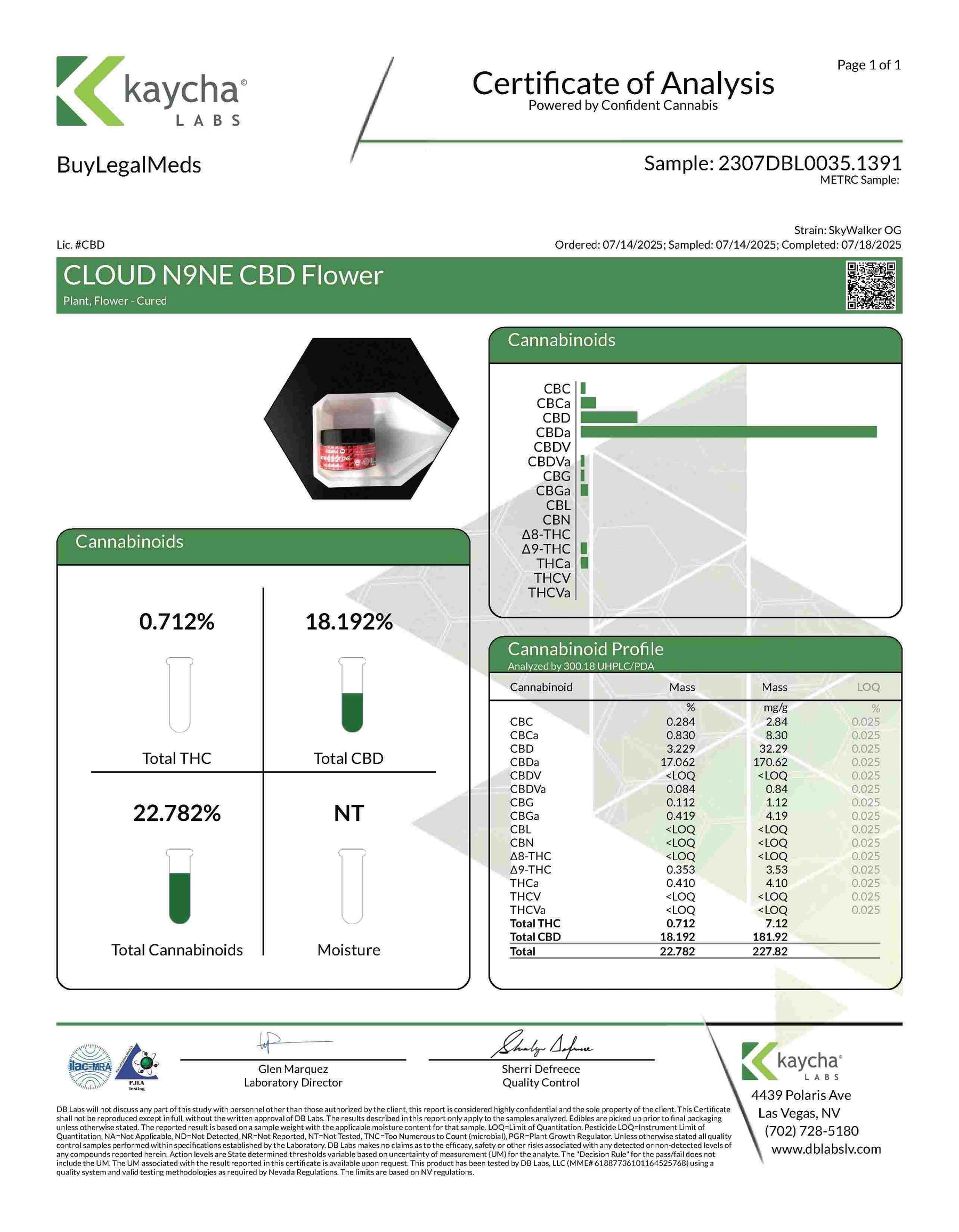 Experience the highest quality with our Cloud N9ne CBD Flower Skywalker indoor strain 5-pack pre-rolls! We take pride in our products and ensure that every Cloud N9ne CBD Flower harvest is rigorously tested and approved by the Department of Agriculture before it reaches your hands. You can trust that our CBD Flower is of the utmost quality and purity. Enjoy the many benefits of CBD with confidence, knowing that you're using a product that has been thoroughly vetted for quality. Try our Cloud N9ne CBD pre-rolls today and see the difference for yourself!