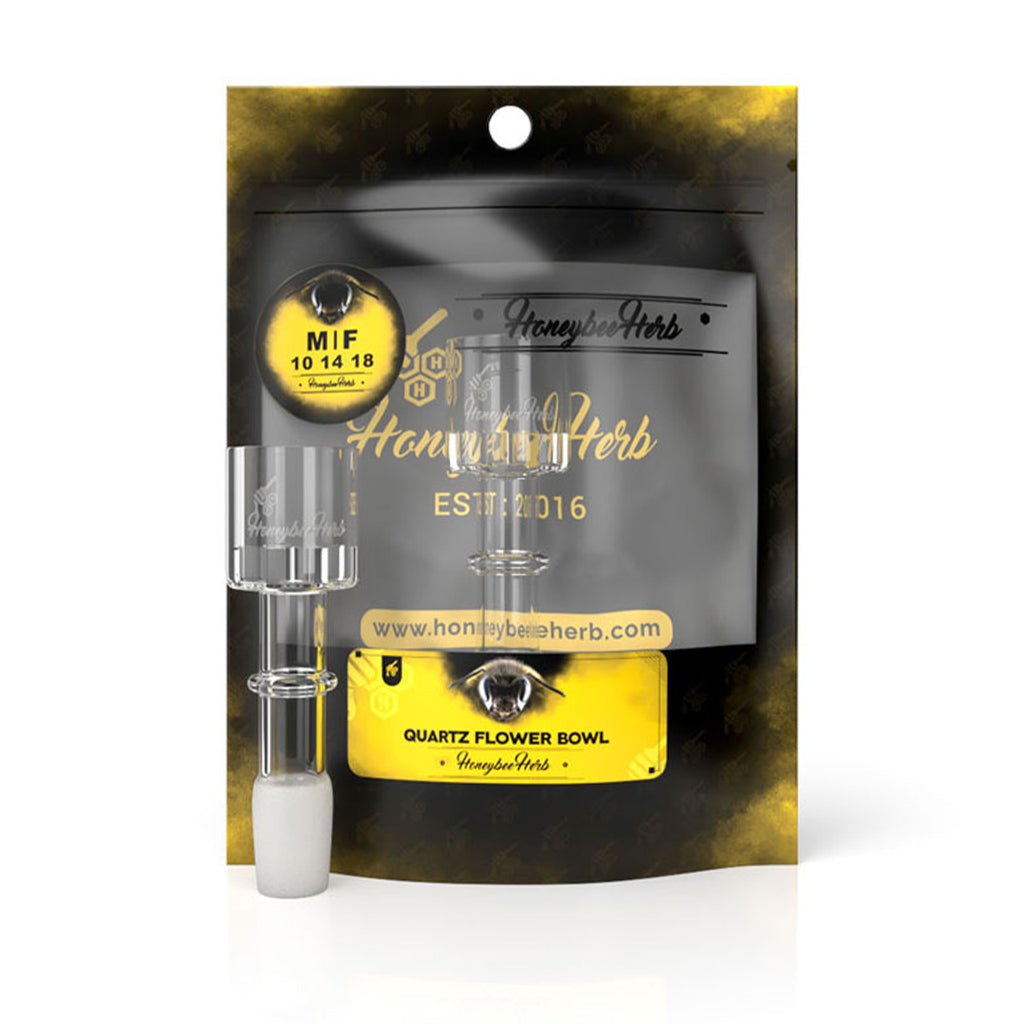 The quartz bong bowl from Honeybee Herb is the perfect addition to your favorite water bong. It features a frosted 14mm male joint, a 22mm bowl, and a convenient handle for ease of use.