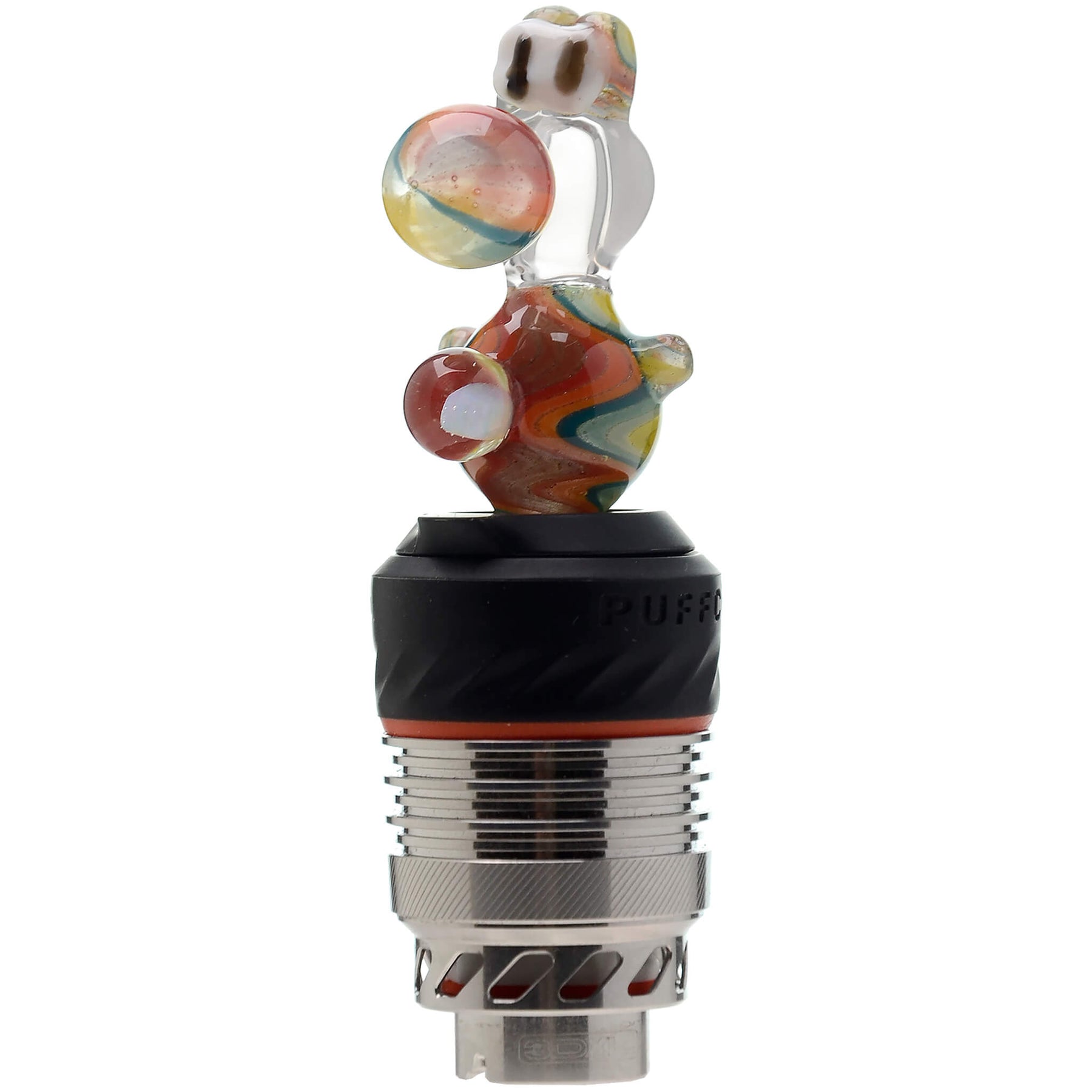 Unleash the ultimate airflow control with the WIGWAG YOSHI 3DXL CARB CAP, a handcrafted glass masterpiece designed exclusively for the Puffco 3DXL Atomizer. Featuring a mesmerizing wigwag pattern fused with vibrant colors, this cap not only enhances your rig’s aesthetic but also optimizes your dabbing experience.
