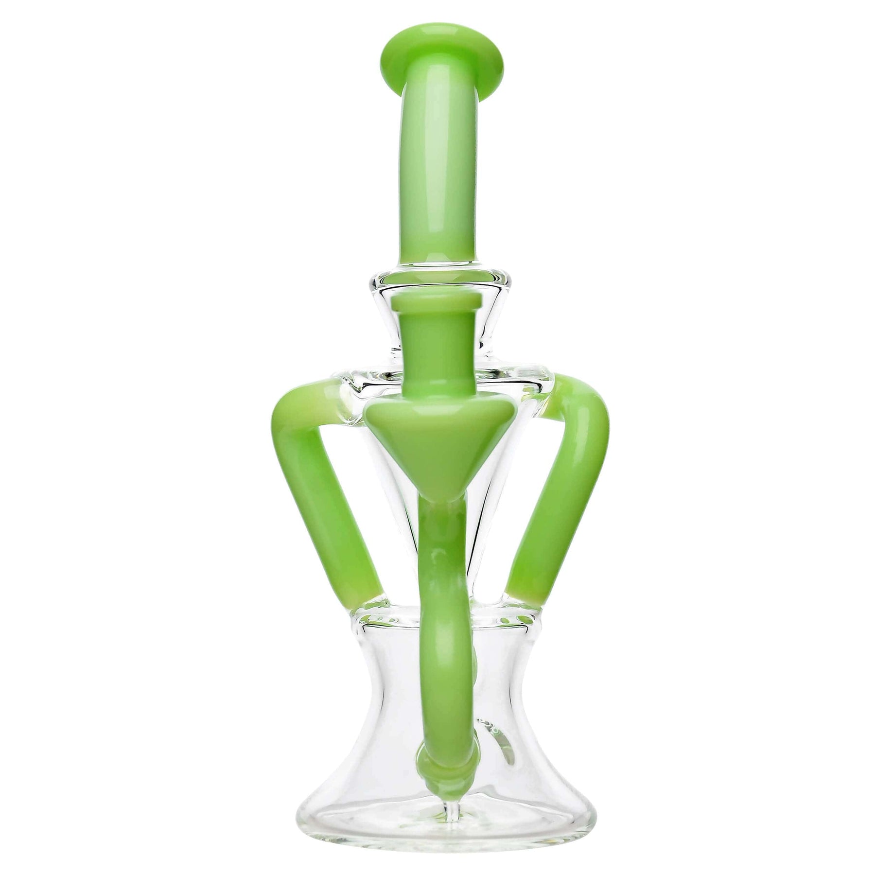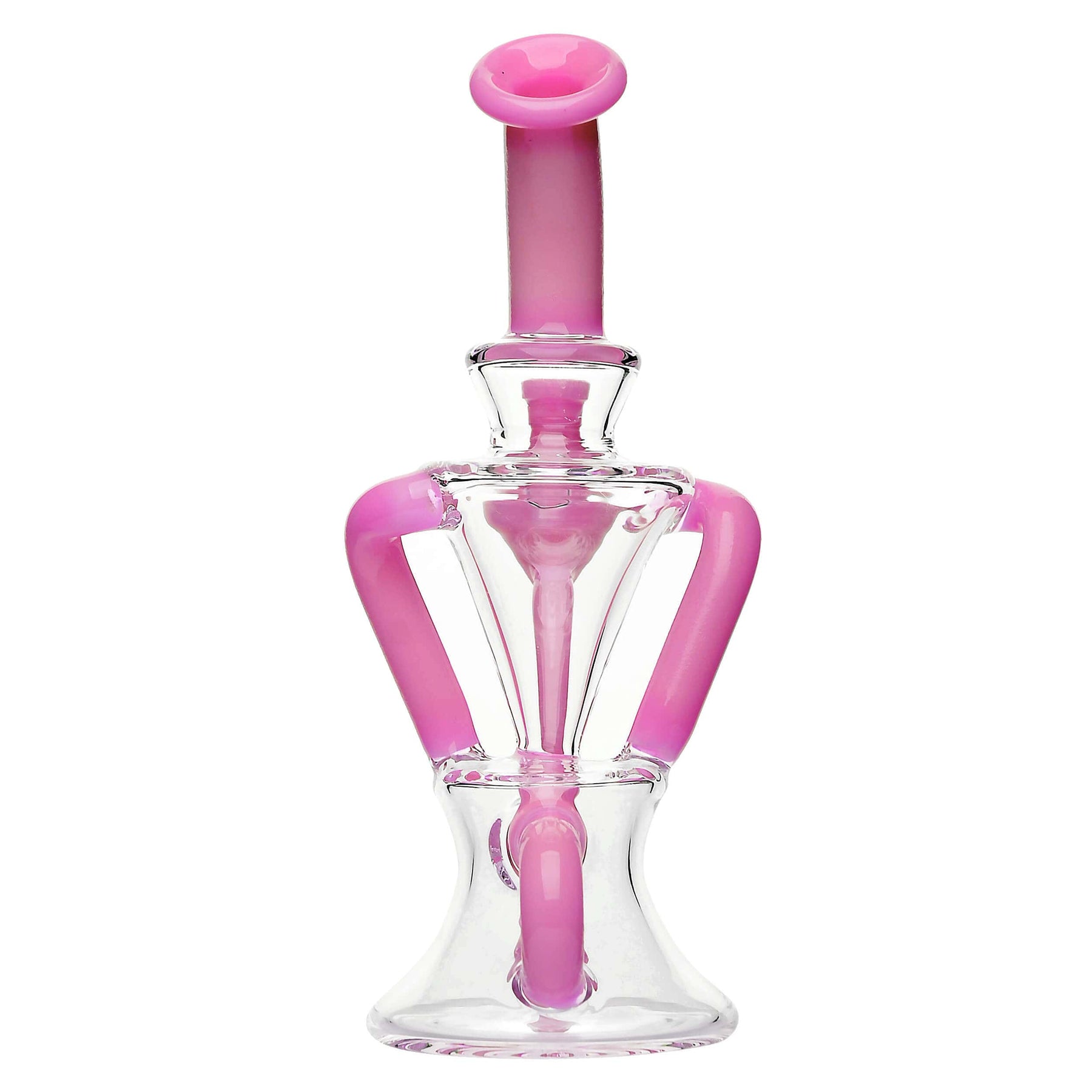 This Premium Twisted Recycler Rig is a masterpiece of modern glass artistry. Featuring striking color-accented twisted tubes that create a dynamic, fluid design, this rig is both visually stunning and functionally superior. The recycler system ensures optimal airflow and smooth hits, while the sturdy base provides excellent stability. Crafted from high-quality borosilicate glass, it guarantees durability and performance. Perfect for enthusiasts who appreciate both aesthetics and precision engineering in their rigs.