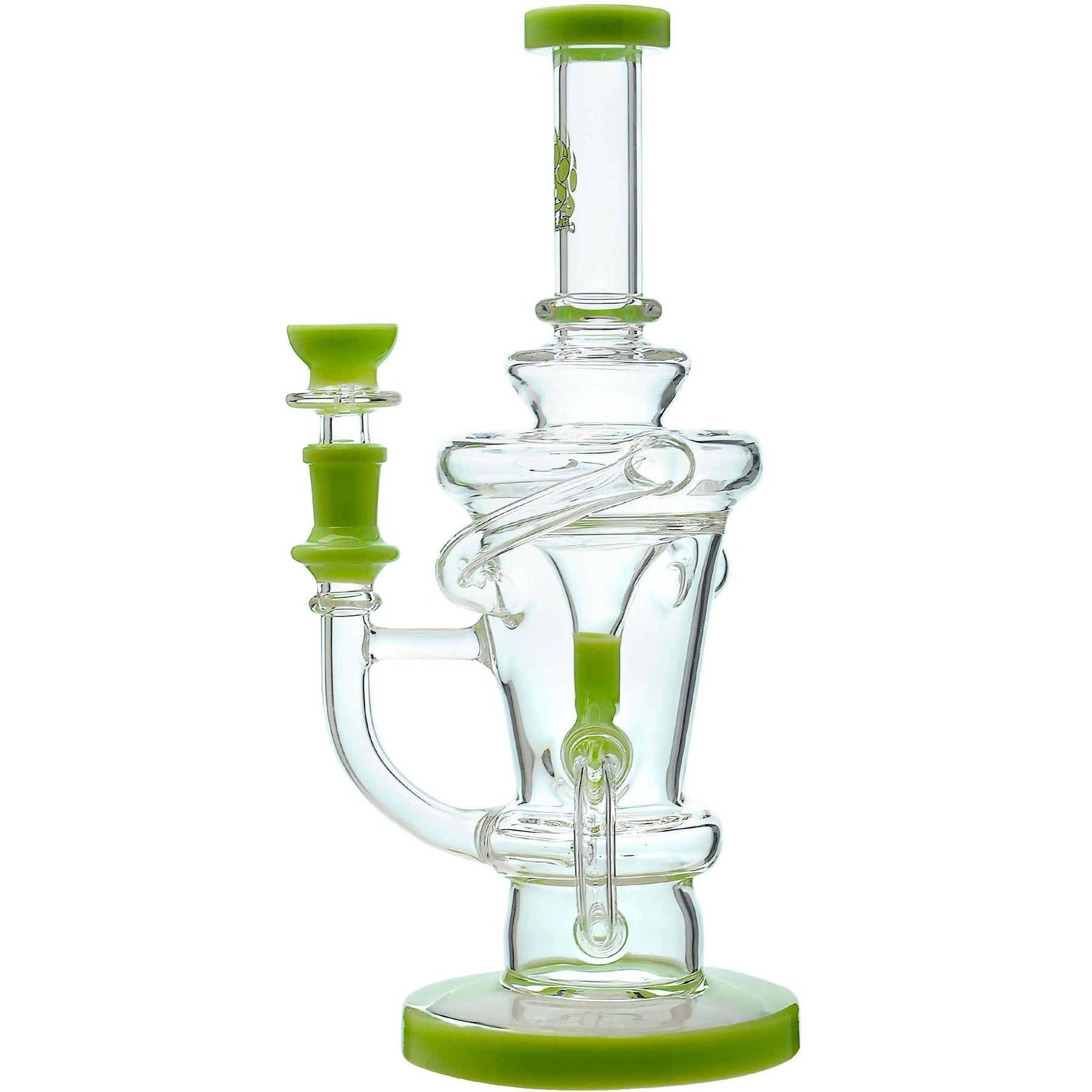 The RECYCLER TORUS is a high-quality, 10 inch Calibear Recycler Torus with a 14.5mm joint. Its unique design helps to purify smoke and provide a smoother hit. This versatile piece also comes with a color bowl for added customization. Upgrade your smoking experience with the RECYCLER TORUS.